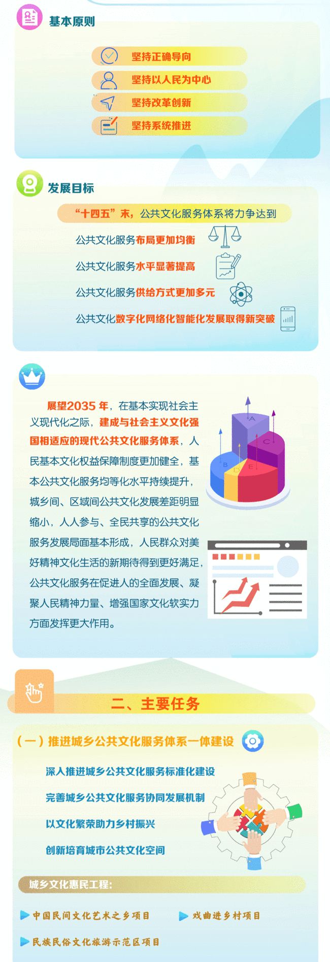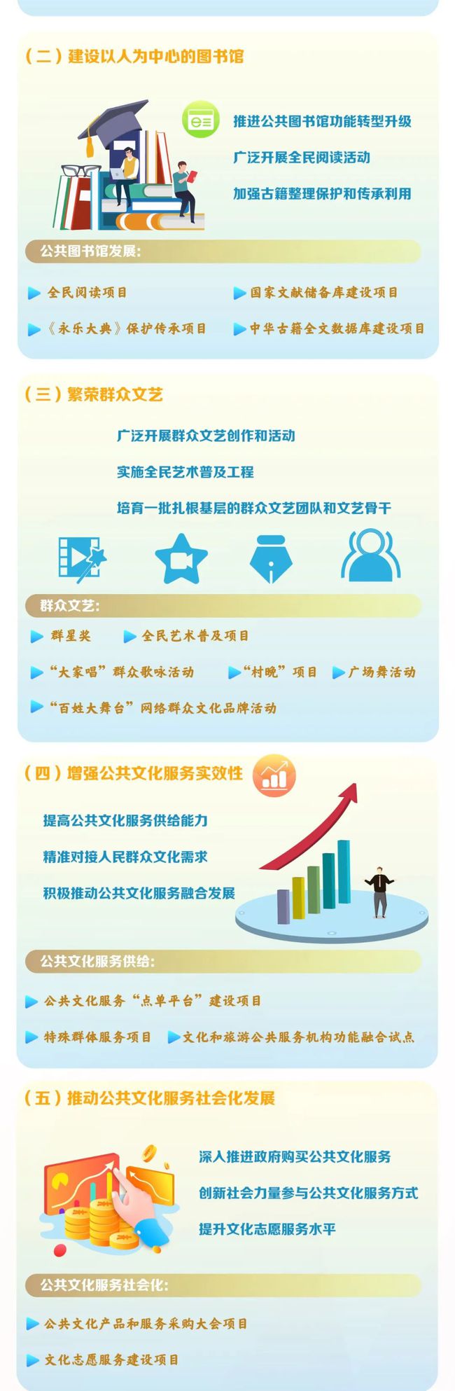 近日,文化和旅游部發(fā)布《“十四五”公共文化服務(wù)體系建設(shè)規(guī)劃》(以下簡稱《規(guī)劃》)?!兑?guī)劃》對“十四五”時期現(xiàn)代公共文化服務(wù)體系建設(shè)作出全面部署,提出了工作總體要求、主要任務(wù)和保障措施,為當(dāng)前和今后一段時期的公共文化服務(wù)體系建設(shè)明確了時間表和路線圖。